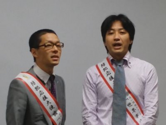 また、今回は本邦初“セーフコミュニティ漫才”として、漫才師『世界事情』(阿部さん・桶谷さん)が 特別出演し、“セーフコミュニティ漫才”を初披露していただきました。漫才を通じて、セーフコミュニティの7つの指針がわかりやすく解説される様子 は、非常に新鮮でした。専門的講義と漫才がドッキングした勉強会は、 日本市民安全学会ならではといえるでしょう。