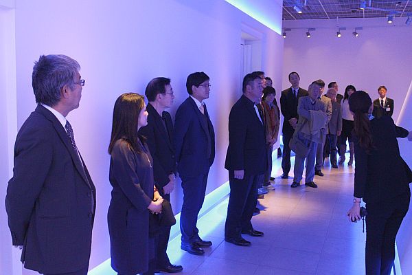 ルーム「MIRAI」では、あらかじめ登録された顔写真をもとに、歩きながらでも顔認証がなされ、未来の会議室へ続く扉が自動的に開きました。セコムの考える、未来の安全安心な社会に向けた様々な技術が紹介されました。また、社会の安全安心に向けた“セコムの想い”が説明されました。その後、2階のセコムホールに会場を移して、研修会が行われました。