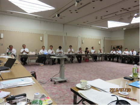 7月30日(土)18:00~ 意見交換会(ホテルプリムローズ大阪) 夜はホテルプリムローズ大阪内の会場で、懇親会が行われ、会員各自の近況報告や市民安全に関わる意見などの発表がありました。