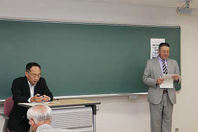議長:小澤光男、議案説明:三橋景虎東洋大学朝霞キャンパス講義棟307教室にて、日本市民安全学会総会が行われました。小沢理事を議長に、1号議案から4号議案までが審議され、いずれも全会一致で可決されました。